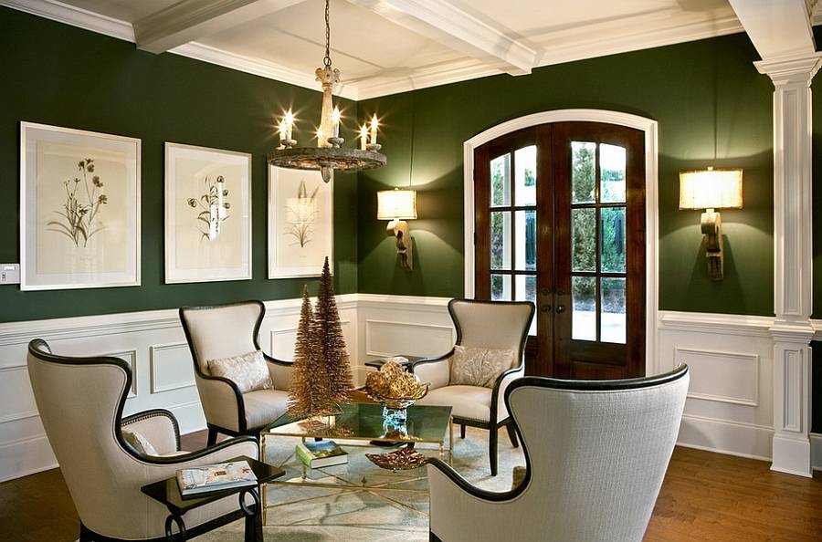Есть же те, которым важно показать свою статусность и величность, а потому их выбор падает на темные оттенки, похожие на изумруд, который придает комнате некую аристократичность и изысканность. Умеренный зеленый создает тонкий баланс между изысканностью и летней домашней теплотой