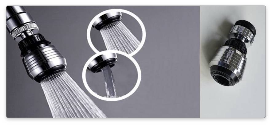 Распылитель здесь выполняет роль фильтра. Продавцы в супермаркетах добавляют еще одну функцию – экономию воды. Однако специалисты о ней почему-то умалчивают.