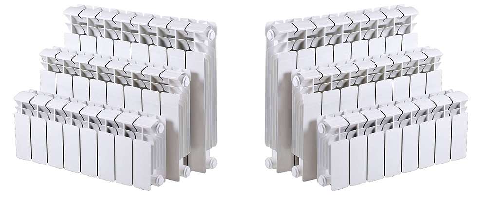 Алюминиевые изделия можно приобрести как в виде отдельных секций (сборку осуществляют непосредственно перед монтажом), так и в виде готовых (собранных в заводских условиях батарей из 4-16 секций). Преимуществом первых является возможность наиболее точного расчета тепловой мощности для обогрева конкретного помещения. Однако их установка более трудозатратна и требует приобретения дополнительных соединительных аксессуаров (муфт и прокладок). Монтаж и подключение вторых занимает намного меньше времени. К тому же места соединения секций готовых батарей качественно прокрашены в процессе заводского изготовления, что, несомненно, весьма положительно влияет на внешний вид. Именно они наиболее востребованы на рынке отопительных приспособлений.