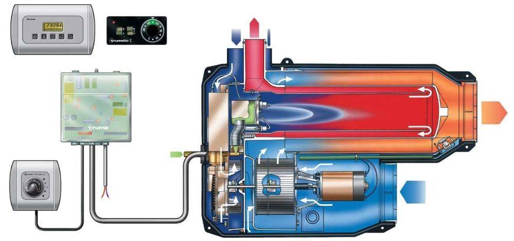 Воздушные системы получили большее распространение, а схема подключения такого автономного отопителя настолько проста, что предусматривает монтаж на любое транспортное средство – единственным ограничением можно назвать габариты корпуса такой печки.