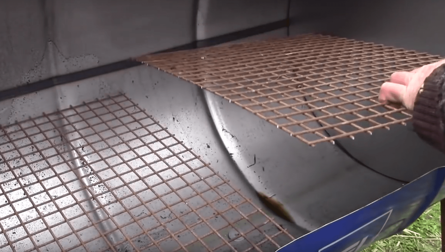 Барбекюшницу делают, вырезав в корпусе откидную крышку. На высоте 10 см от дна устанавливают колосниковую решетку, на которую насыпают уголь. Она поможет: