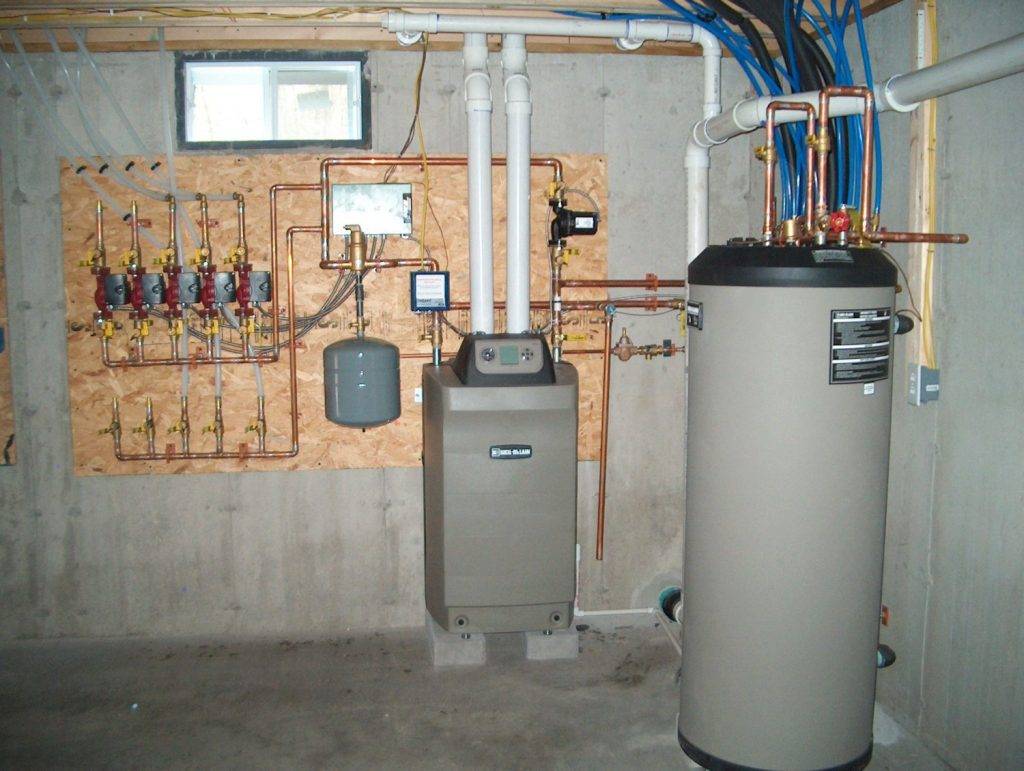 Просто, как уже писали выше, есть модели с собственным управлением, и тогда их установка и обвязка — более простая задача. Если же модель простая, приходится продумывать систему регулирования температуры и переключения котла с обогрева радиаторов, на обогрев горячей воды.