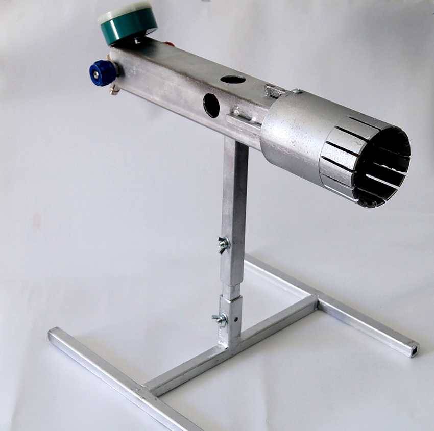 В емкости проделывают отверстие по диаметру трубки. Самой трубке придают форму буквы «Г», а горелку подвешивают.