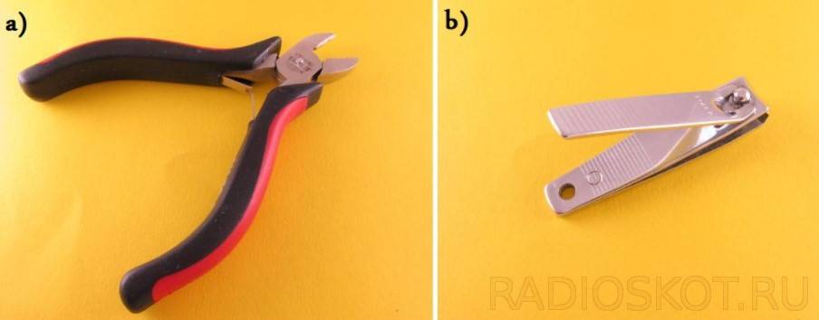 Плоскогубцы – ими срезаются ножки спаянных элементов (можно использовать обычные косметические кусачки, но они довольно быстро повреждаются).