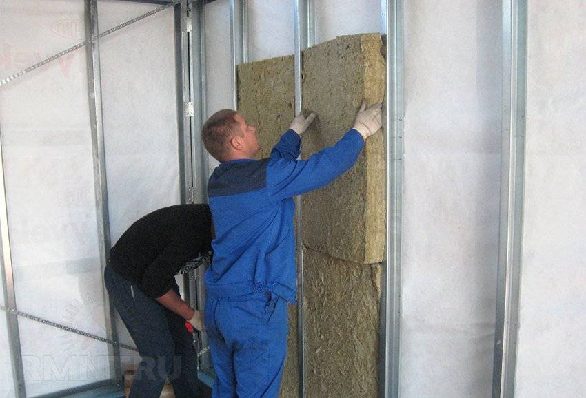 Очень важный этап- закладка утеплителя в направляющие. От аккуратности работы будет напрямую зависеть качество утепления: