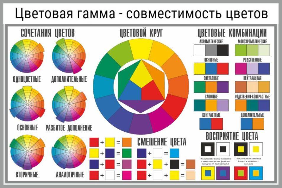 Если же говорить об основных цветах: белом и черном, то помимо того, что они прекрасно сочетаются друг с другом, кроме этого, к ним подходит практически любой другой цвет. Правда, лучше к белому выбирать светлые тона, а к черному соответственно более затемненные.