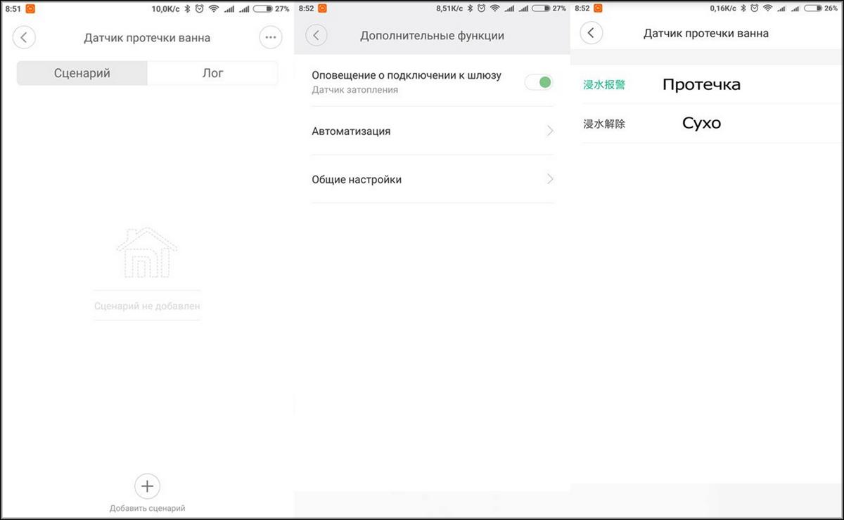 При обнаружении утечки воды на смартфон пользователя приходит автоматическое уведомление. Дополнительно прописывать этот момент в сценариях не требуется.