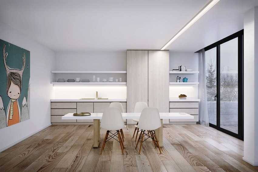 В кухне постоянно что-то готовится. Помещение наполнено паром, а на пол попадает жир. Если уложить деревянный пол, то нужно обязательно покрыть его лаком или другим составом, который образует легко моющуюся защитную плетку.