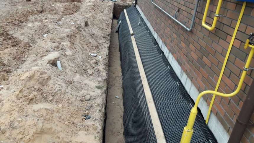 Эта мера предосторожности защитит уже выкопанные траншеи и само здание от проникновения в подвальное помещение влаги в случае проливного дождя