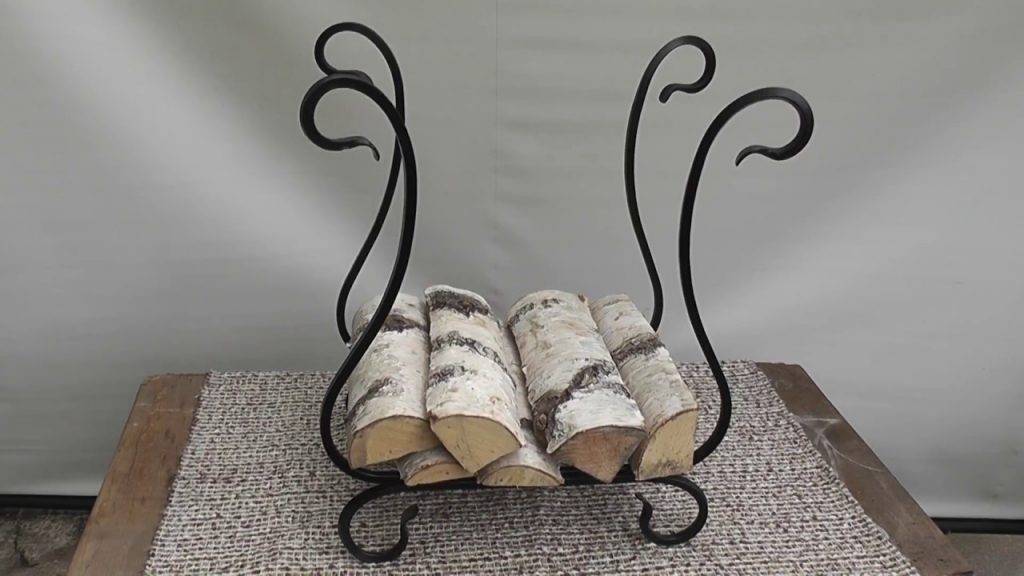 Очень оригинально и красиво делают кованые подставки для дров, которые можно использовать не только для хранения дров, но и в качестве стула-скамейки.