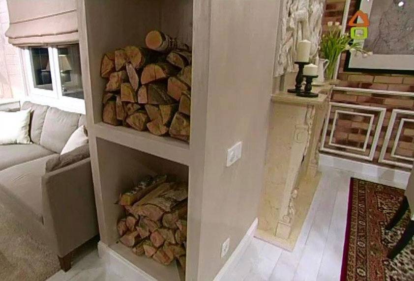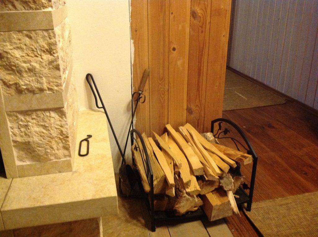 Если во время ремонта вы не подумали и не запланировали такую нишу, то выходом из сложившейся ситуации будет переносная подставка для дров. Также ее можно использовать в небольших закрытых беседках.