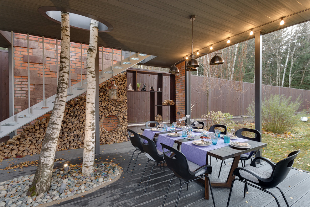 Совет! Нет отдельного места для организации дров? Сделайте нишу под верандой или террасой, предварительно защитив снизу от влаги.