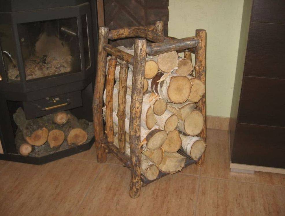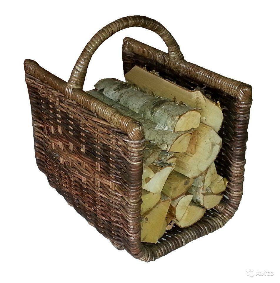 Также используют в качестве дровника плетеные из лозы корзины. Но они не долговечны, поэтому не получили большой популярности.