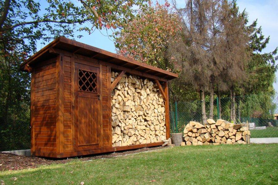 Более габаритные сооружения, напоминающие сараи, предназначаются для постоянного использования дров.
