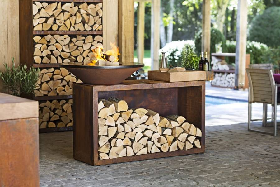 Если у вас в доме или закрытой беседке есть печь или камин, то вам нужна еще одна дровница. Она может быть стационарной или переносной.