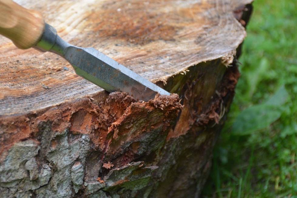 Для начала стоит отметить, что перед работой дерево необходимо высушить. После этого с помощью ножа отделяем кору.