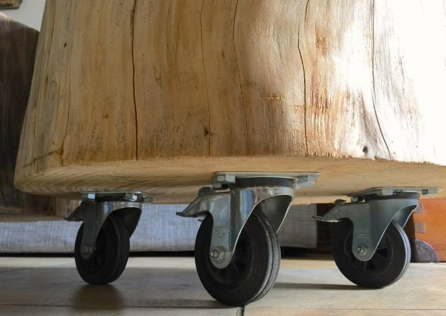 Ко дну столика прикрепляем колесики и переворачиваем конструкции обратно. Стильный журнальный столик готов!