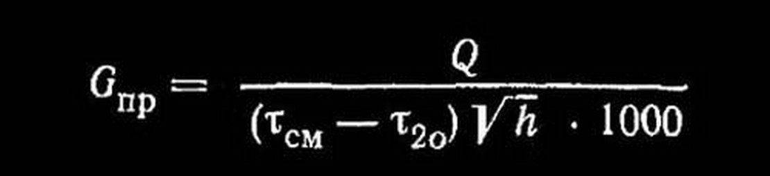 Расчеты ведутся в сантиметрах, Gпр – это общий объем расхода прогретого теплоносителя в сети с учетом гидравлического сопротивления потока.