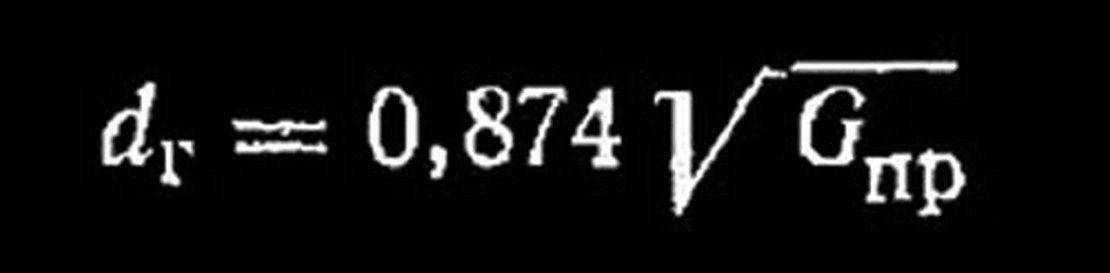 Чтобы рассчитать размер диаметра узкой части сопла, применяется формула (измерения в мм):
