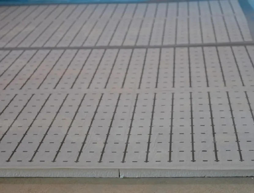 Фольгированный полистирол имеет дополнительный слой с отражающим эффектом, что положительным образом влияет на энергоэффективность конструкции теплого пола за счет равномерного распределения тепловых потоков и обогрева помещения. На поверхности фольгированного слоя производителем наносится разметка, которая упрощают работу по фиксации теплоносителя.