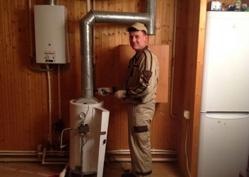 Дымоход (диаметром от 140 мм) для продуктов сгорания оборудуется вне жилых помещений. Ниже места соединения трубы от нагревательного бака с дымоходом, располагается мусоросборник – «карман» для посторонних предметов и отходов, случайно попавших в канал.