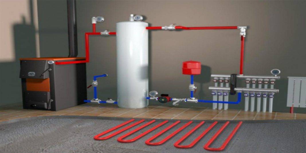 Если планируется совмещение функционала газового и другого оборудования с теплыми полами в системе, в которой не предусмотрены радиаторы, нужно внедрить в связку буферную емкость. Эта мера необходима для профилактики тактования горелки, здесь будет достаточно даже компактного резервуара.