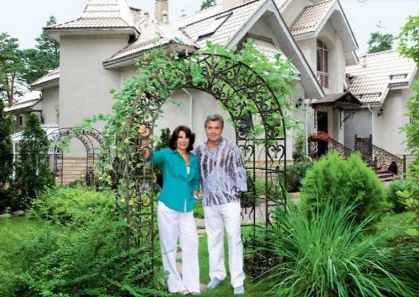 Возле особняка обустроена просторная лужайка, где хозяева с удовольствием гуляют в свободное время. Зеленые насаждения выглядят максимально аккуратно, так как им обеспечен постоянный уход. Несколько лет назад Лев Лещенко и его жена Ирина решили развить придомовую территорию руками передачи «Идеальный ремонт». Супруги давно мечтали об удобной беседке для застолий и чаепитий на открытом воздухе.
