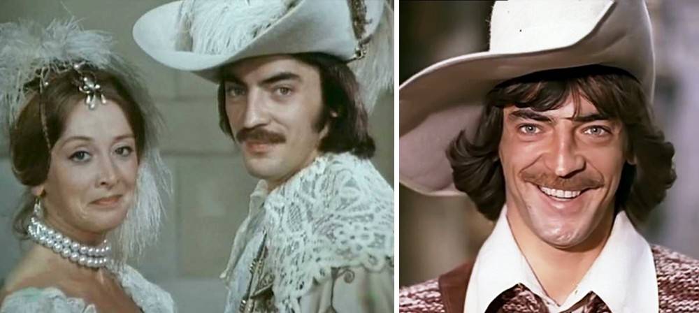 Михаил Боярский. Слева с Маргаритой Тереховой в фильме «Собака на сене», 1977г., справа в фильме «Д’Артаньян и три мушкетёра», 1979 г.