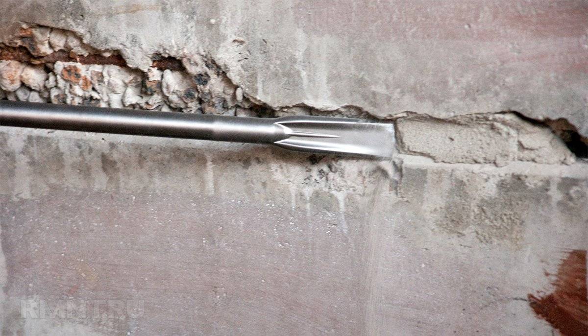 Наиболее эффективным способом устранить проблему считается инъектирование. Данный способ предусматривает предварительное высверливание глубоких отверстий, которые направляют под углом к проблемному участку.