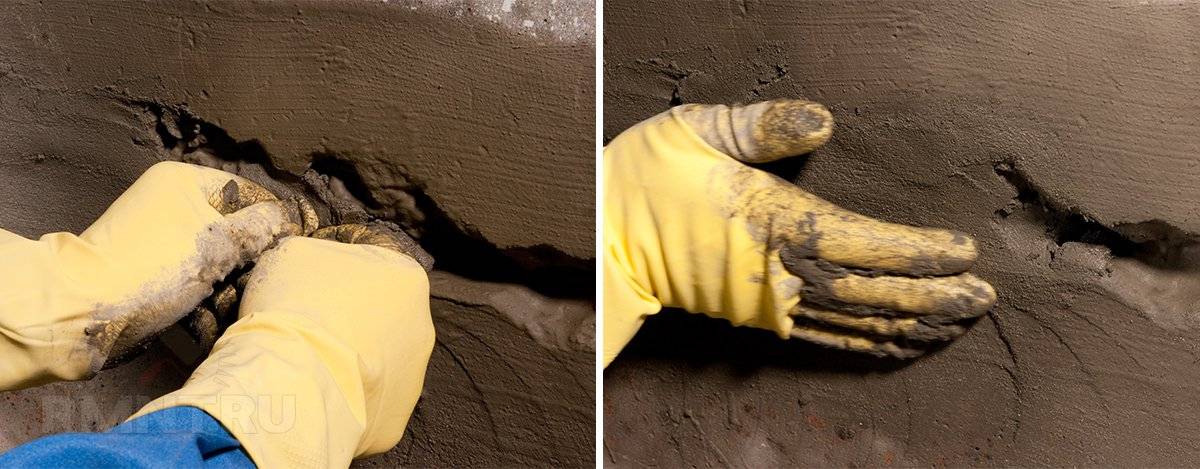 - До старта работы по заделыванию цементно-известковым раствором необходима предварительная подготовка. Сначала нужно проверить саму трещину, нет ли рядом сколов, так как в дальнейшем они могут стать неглубокими ямками.
