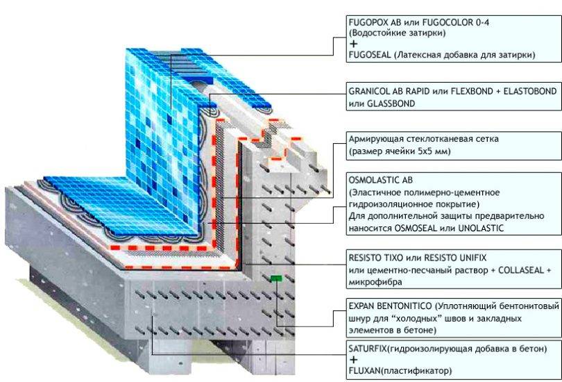 Технология проведения работ при гидроизоляции открытых и закрытых бассейнов