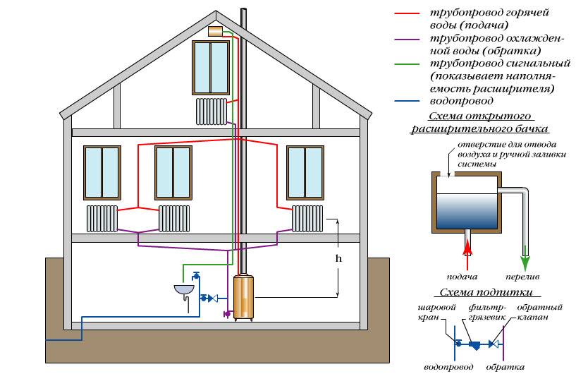 Как работает самотечное отопление двухэтажного дома:
