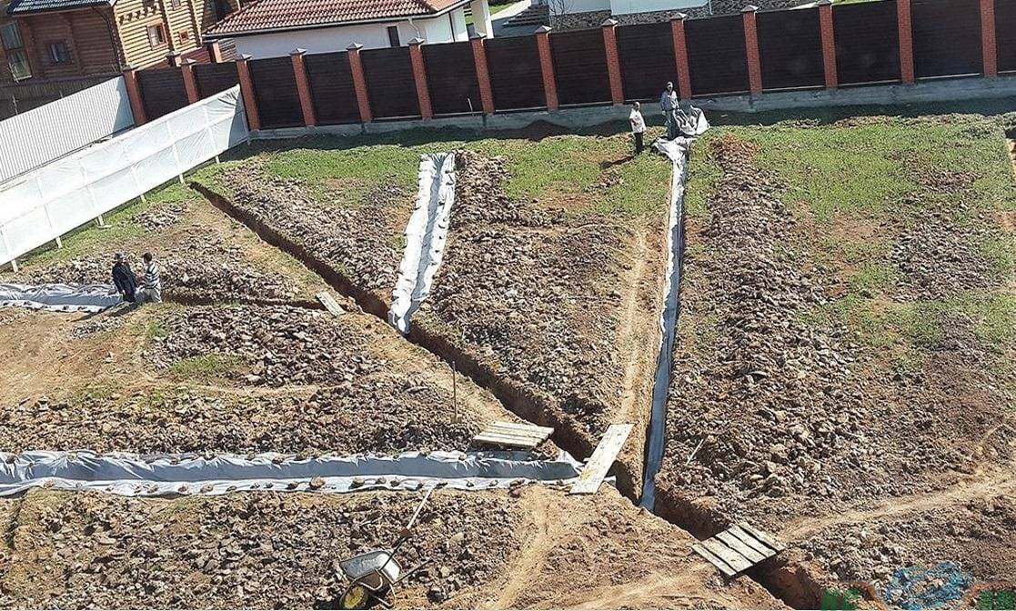 Такое положение не дает воде скапливаться, она полностью отводится через дрены. Заглубление труб проводится на 400 — 600 мм в зависимости от влажности почвы.