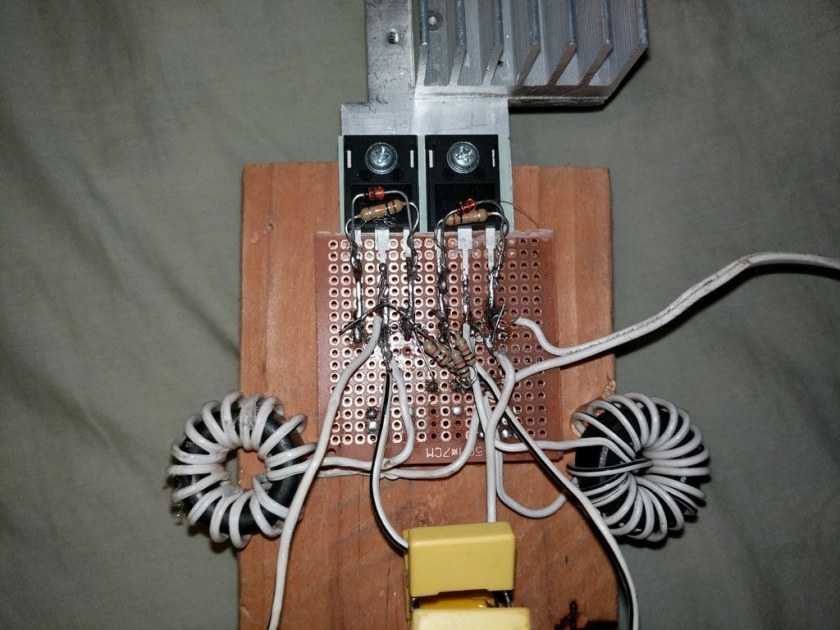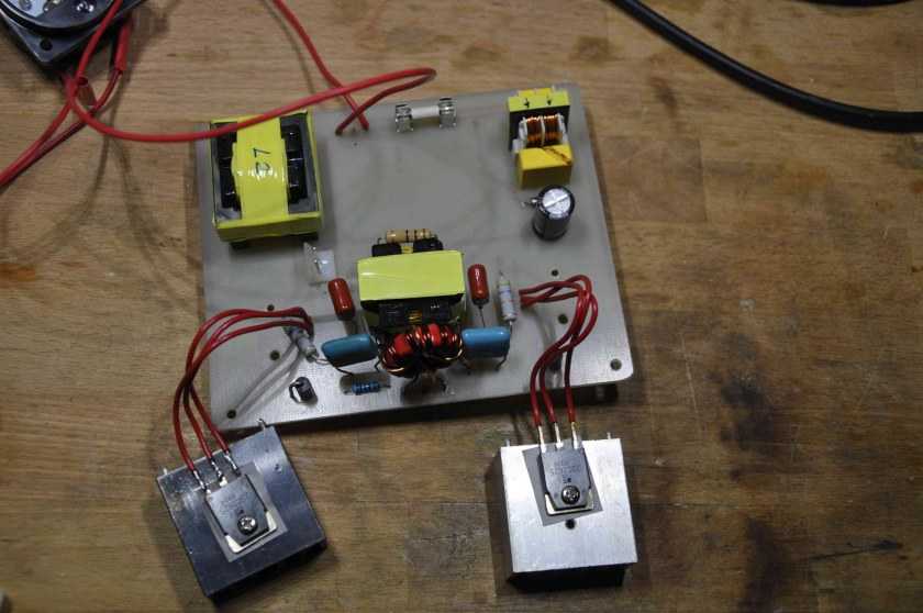 На радиаторы охлаждения устанавливаются транзисторы. Во время использования прибор интенсивно нагревается, поэтому лучше подготовить крупные радиаторы.