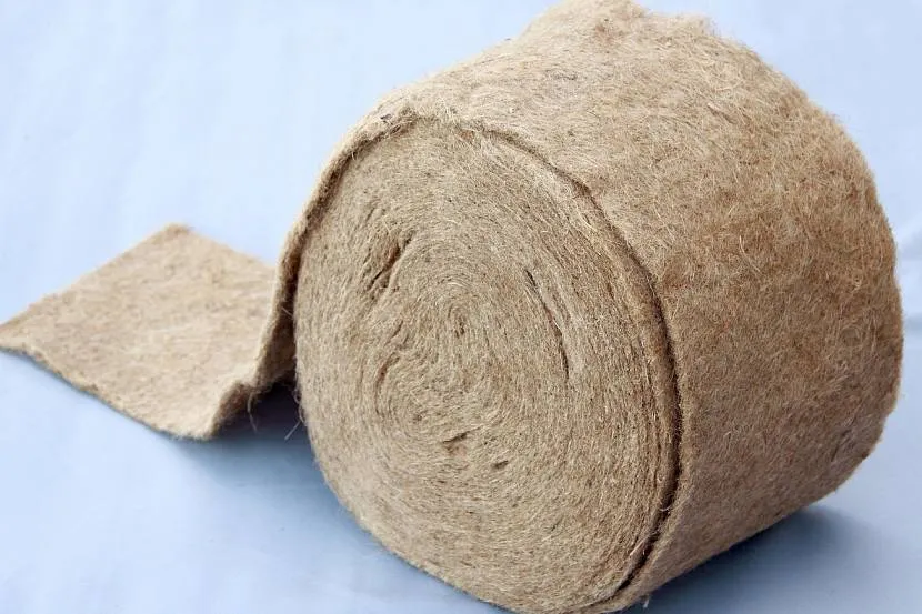 - льняной джут. В этом случае, чаще всего, соотношение волокон сырье один к одному. Джут составляет наружные слоя, а лен размещают внутри. Получается своеобразный многослойный «пирог». Такой утеплитель обладает эластичность льна, и прочностью и жесткостью джута;