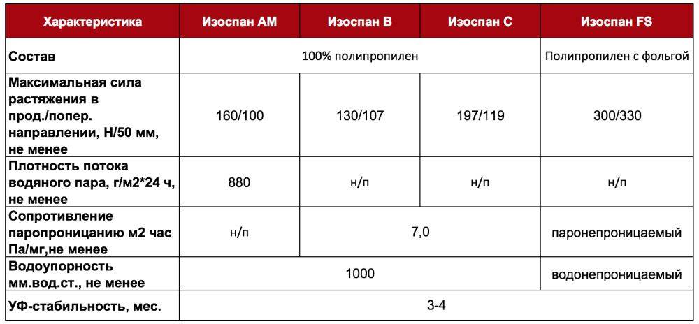 Все виды производимого изоспана изготавливаются из полипропилена и делятся на 4 ёмкие линейки, отличающиеся по характеристикам и функциональности: