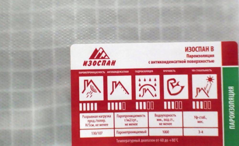 Также материалы для парового барьера разделяют по степени паропроницаемости. Для примера приведены данные популярного бренда «Изоспан».