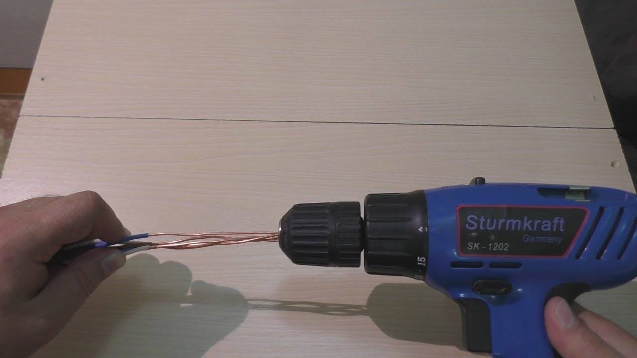 Шуруповерт, имеющий специфическую насадку, отлично подходит для скручивания разделенных концов проводов. Обычно скрутку делают при помощи пассатижей, но желающие могут воспользоваться шуруповертом, применив его по такому назначению. Главное, правильно выполнять эту хитрую процедуру.