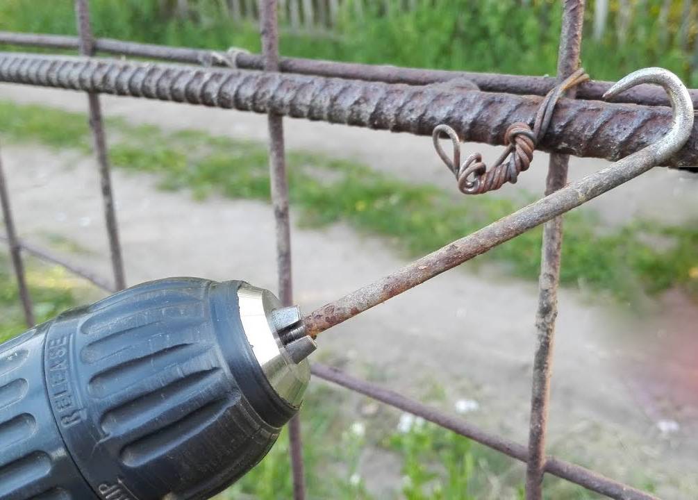 Шуруповерт можно применять для вязания арматуры, используя стальную проволоку. Это широко распространено при строительстве, когда происходит возведение различных железобетонных конструкций домов и фундамента. Для того чтобы вязать, берут аккумуляторный или сетевой инструмент, который имеет насадку крючок.