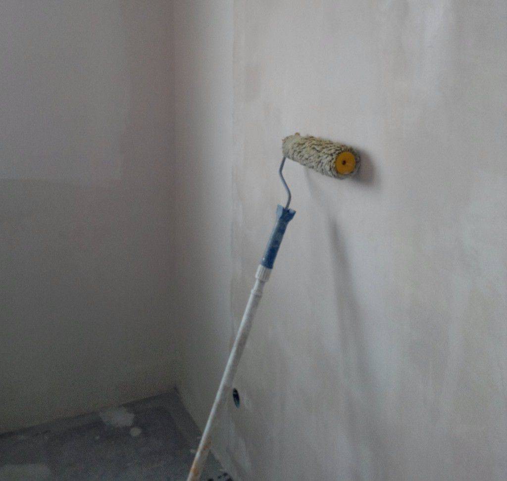 Сухие стены необходимо слегка ошкурить, чтобы сгладить неровности прошпаклеванных участков, а затем протереть тряпкой от пыли. После этого поверхность 1-2 раза обрабатывают акриловой грунтовкой. Если по периметру обрабатываемых участков находятся обои, наносить грунтовку следует так, чтобы захватить край шириной 1 см – то, что будет спрятано под облицовкой.
