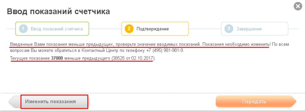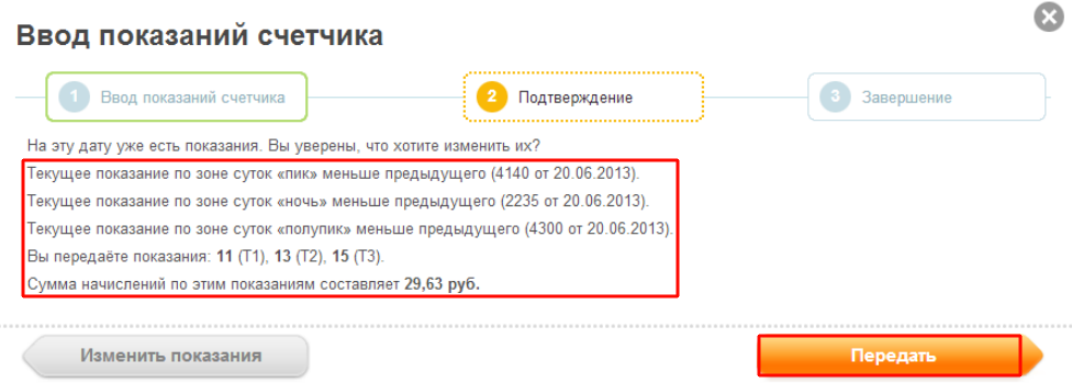 - На завершающем этапе нужно ввести в следующей строке данные счетчика и нажать кнопку «Передать».