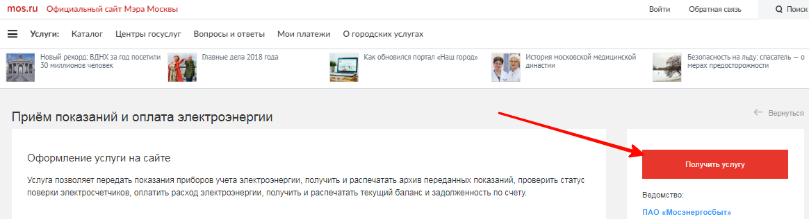 Передача данных онлайн через личный кабинет на сайте Мосэнергосбыта