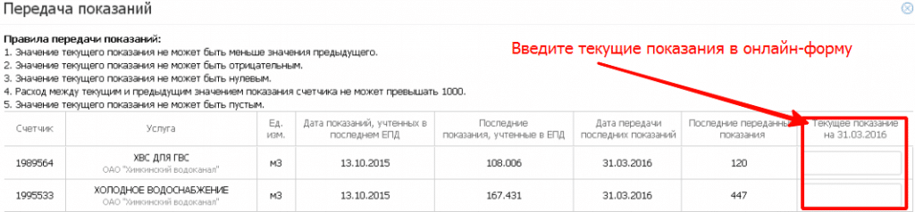 Чтобы не допустить ошибку при подаче заявки, нужно убедиться, что новые показания вписаны в правильное окно