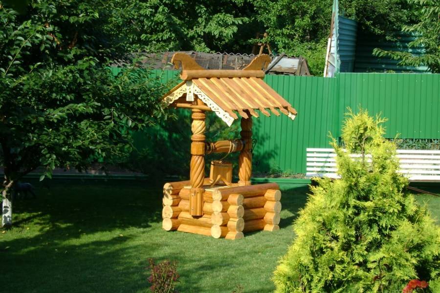 В качестве материала может выступить металл или древесина. Расход при этом будет минимальным. Однако существует одно «но» — зимой в таком колодце вода может замерзнуть. Если вы не планируете использовать ее в морозы, то никаких проблем. В противном случае потребуется утепление домика. Однако и тогда его можно сделать открытым. Для этого следует приобрести пенополистирольную скорлупу, которая предлагается к продаже в разных размерах. Элемент фиксируется, а поверх укладывается отделка.