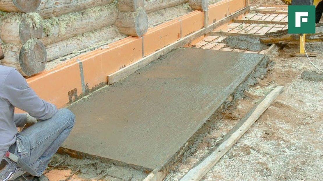 На следующем этапе приготовленный цементный раствор заливают в опалубку, разравнивают правилом и дожидаются полного затвердевания.