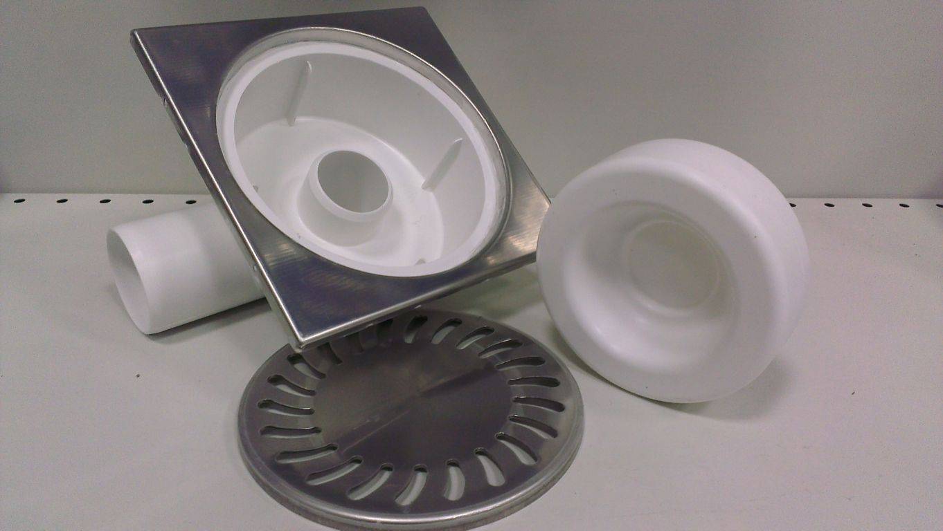 Элементы сухого трапа, которые располагается внутри конструкции пола, изготовлены из пластика, а наружная крышка из нержавейки.