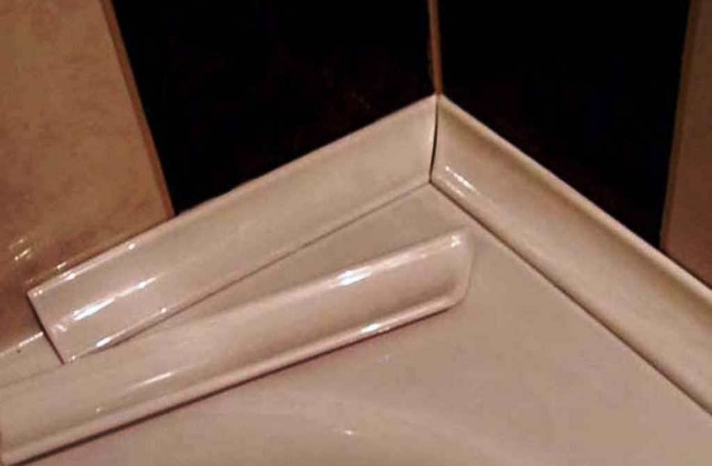 - Пластиковый уголок. Предназначен для гораздо более долговечной службы, который можно легко заменить при первой необходимости — во время ремонта помещения, при замене ванны или из-за пожелтения самого изделия.