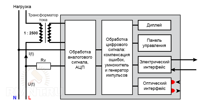 В электронном счётчике электроэнергии сила тока во вторичной обмотке токовых трансформаторов преобразуется генератором частоты в серию импульсов пропорционально высокой частоты. Такие измерительные схемы включают большое число высокоточных электронных компонентов, в то время как прибор не имеет встроенной защиты от пыли, влаги и вибрации.