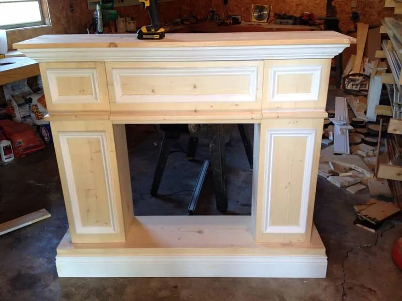 Декоративные камины можно изготавливать в двух вариантах. Первый подразумевает крепление листов ДСП в стык, без рамы. При втором собирается каркас из брусков, а затем обшивается фанерой. Выравниваются углы, затем шпаклюется поверхность под дальнейшую отделку. Если опыта работы с древесиной мало, то лучше не браться за сложные конструкции, а остановиться на проектах с прямыми линиями.
