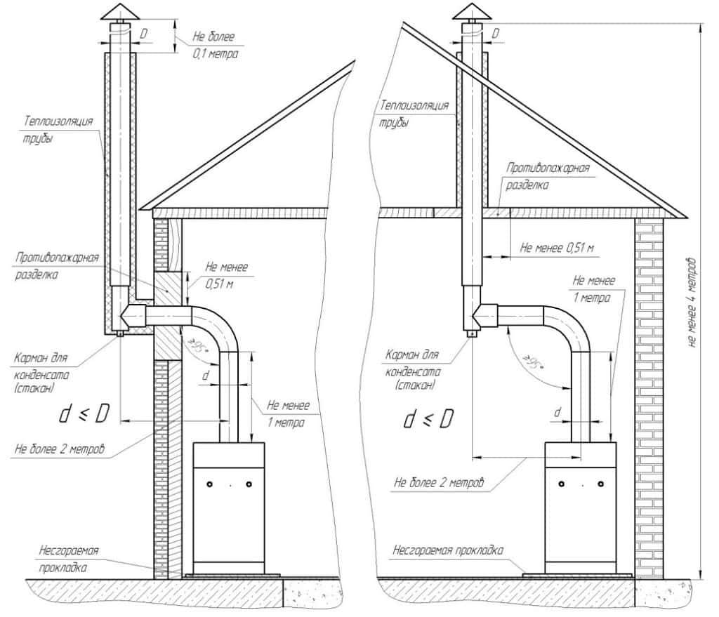 С отработанным газом выводятся недоокисленные продукты сгорания, кислотные ангидриды и оксиды. При появлении конденсата они превращаются в кислоты и разрушают материал стенок. Так что последний должен быть стойким к температуре и действию кислот.